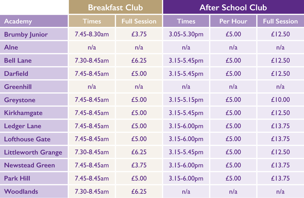 *Newstead Green prices will increase, from April 2026, the cost will increase to £4.25 per child. From September 2026, the cost will be £5.00 per child